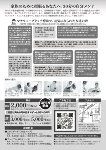 家族のために頑張っているあなたのメンテナンスとしても最適な施術です。
